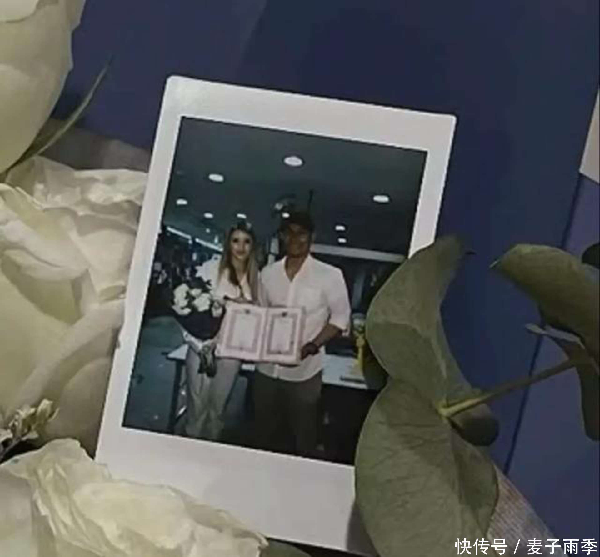 Daria在社交平台上晒出了两人领证的照片和求婚的视频。照片里,两人肩靠着肩,脸贴着脸,笑容灿烂;视频里,Om单膝下跪向Daria求婚,拿出准备好的求婚戒指给她戴上,两人相拥在一起,幸福满满。